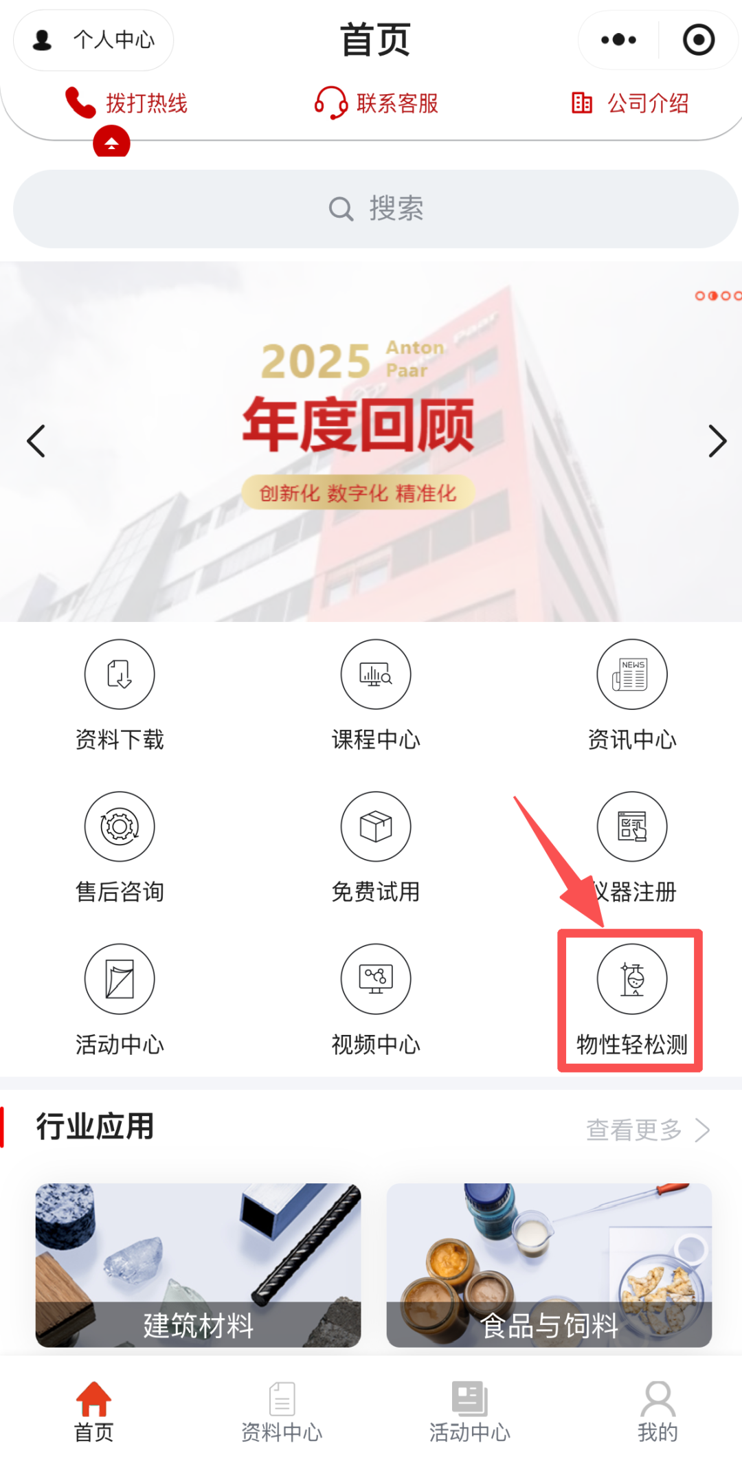 精准的物性测量,是科学研发与质量控制的核心环节,却常因流程复杂、耗时费力而令人望而却步。现在,安东帕化繁为简,在官方小程序中打造“物性轻松测”专属板块,旨在为您提供一站式、智能化的物性测试解决方案,让精准测量变得简单、高效。