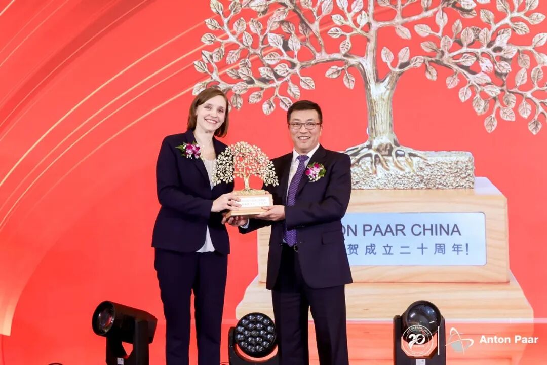 安东帕集团 CSO Katharina Christopoulos 女士和中国区总经理 Dickson Wang 先生一同登台向中国团队赠予“二十周年纪念树”;承载着集团对中国市场持续扎根、向上生长的美好寓意,也延续了安东帕以“年轮”铭刻发展、以“树木”寄语未来的独特企业传统。